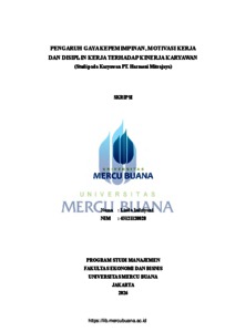 Uncontrolled Keywords: Gaya Kepemimpinan, Motivasi Kerja, Disiplin Kerja, Kinerja Karyawan.