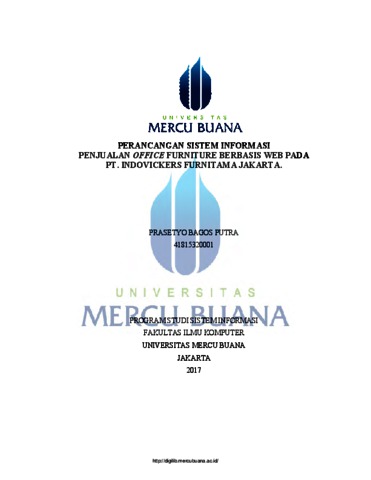 PUTRA, PRASETYO BAGOS (2017) PERANCANGAN SISTEM INFORMASI PENJUALAN OFFICE FURNITURE BERBASIS WEB PADA PT. INDOVICKERS FURNITAMA JAKARTA. S1 thesis, Universitas Mercu Buana Jakarta.