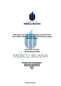 MUSYAWARAH, MUSYAWARAH (2017) IMPLEMENTASI SISTEM PENGAMBILAN KEPUTUSAN PADA MEDIA PROMOSI BERBASIS WEB MENGGUNAKAN PHP DAN MySQL. S1 thesis, Universitas Mercu Buana Jakarta.