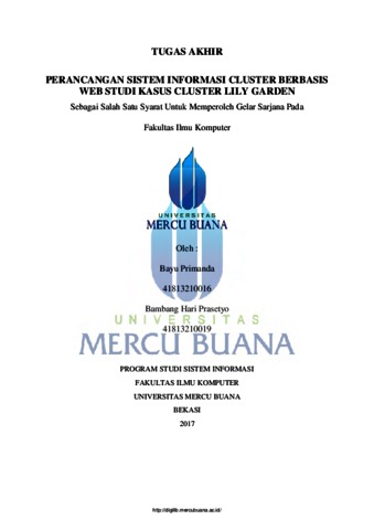 Prasetyo, Bambang Hari (2017) PERANCANGAN SISTEM INFORMASI CLUSTER BERBASIS WEB STUDI KASUS CLUSTER LILY GARDEN. S1 thesis, Universitas Mercu Buana Bekasi.