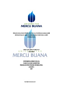 TAMBUNAN, RISKY RICARDO (2017) PERANCANGAN DAN PEMBANGUNAN ALAT KENDALI JARAK JAUH MENGGUNAKAN ARDUINO BERBASISKAN SMS PADA LAMPU PENERANGAN. S1 thesis, UNIVERSITAS MERCU BUANA - CIBUBUR.