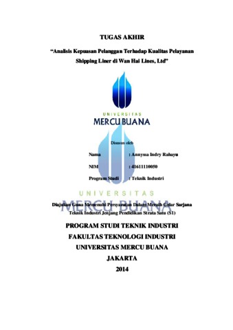 RAHAYU, ANNYSSA INDRY (2014) Analisis Kepuasan Pelanggan Terhadap Kualitas Pelayanan Shipping Liner di Wan Hai Lines, Ltd. S1 thesis, Universitas Mercu Buana.