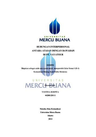 ROSPITA, YUSTINA (2014) HUBUNGAN INTERPERSONAL ANTARA ATASAN DENGAN BAWAHAN DI PT. VAYATOUR. S1 thesis, Universitas Mercu Buana.