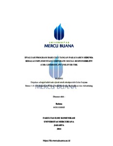 EVALUASI PROGRAM HARI CUCI TANGAN PAKAI SABUN SEDUNIA SEBAGAI IMPLEMENTASI CORPORATE SOCIAL RESPONSIBILITY (CSR) LIFEBUOY, PT UNILEVER TBK