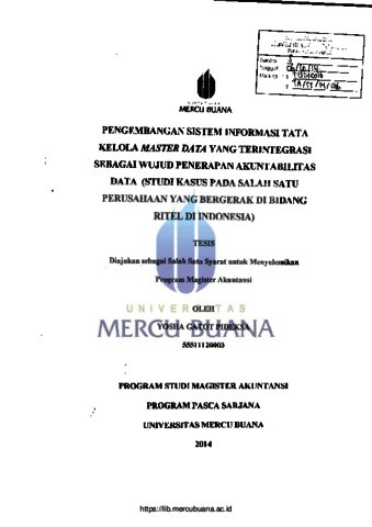 PIDEKSA, YOSHA GATOT (2014) Pengembangan Sistem Informasi Tata Kelola Master Data Yang Terintegrasi Sebagai Wujud Penerapan Akuntabilitas Data (Studi Kasus Pada Salah Satu Perusahaan Yang Bergerak di Bidang Ritel di Indonesia). S2 thesis, Universitas Mercu Buana.