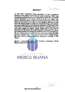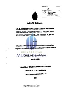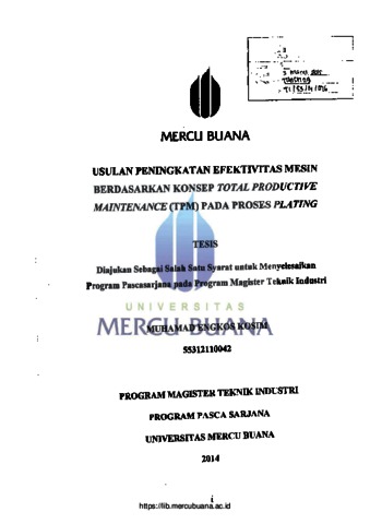 KOSIM, MUHAMAD ENGKOS (2014) USULAN PENINGKATAN EFEKTIVITAS MESIN BERDASARKAN KONSEP TOTAL PRODUCTIVE MAINTENANCE (TPM) PADA PROSES PLATING. S2 thesis, Universitas Mercu Buana Jakarta.