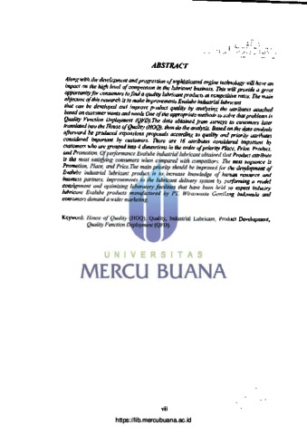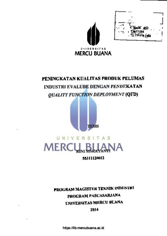 Siskayanti, Rini (2014) Peningkatan Kualitas Produk Pelumas Industri Evalube Dengan Pendekatan Quality Function Deployment (QFD). S2 thesis, Universitas Mercu Buana.