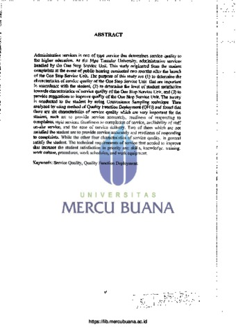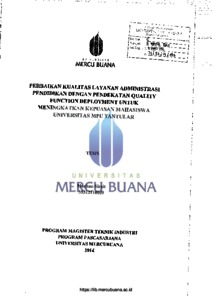 | Uncontrolled Keywords: | Kualitas Layanan, Quality Function Deployment |