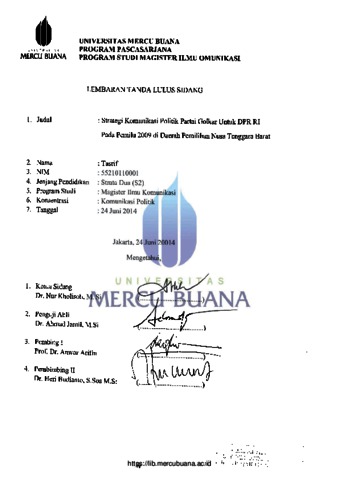 TASRIF, TASRIF (2014) STRATEGI KOMUNIKASI POLITIK PARTAI GOLKAR UNTUK DPR RI PEMILU 2009 DI DAERAH PEMILIHAN NUSA TENGGARA BARAT. S2 thesis, Universitas Mercu Buana Jakarta.