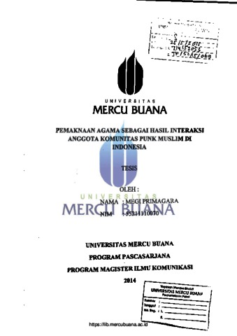 PRIMAGARA, MEGI (2014) PEMAKNAAN AGAMA SEBAGAI HASIL INTERAKSI ANGGOTA KOMUNITAS PUNK MUSLIM DI INDONESIA. S2 thesis, Universitas Mercu Buana Jakarta.