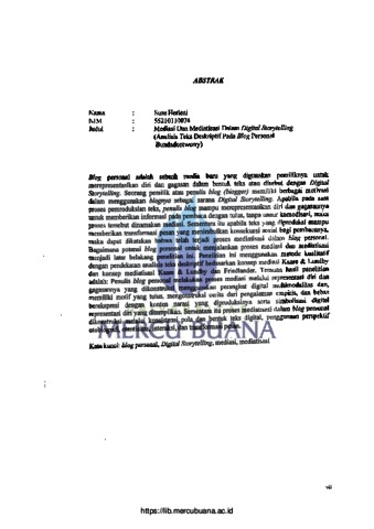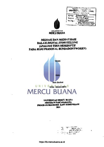 Herleni, Suse (2014) Mediasi dan Mediatisasi Dalam Digital Story Telling (Analisis Teks Deskriptif Pada Blog Personal BundaDontWorry). S2 thesis, Universitas Mercu Buana.