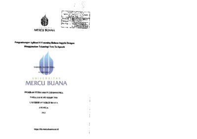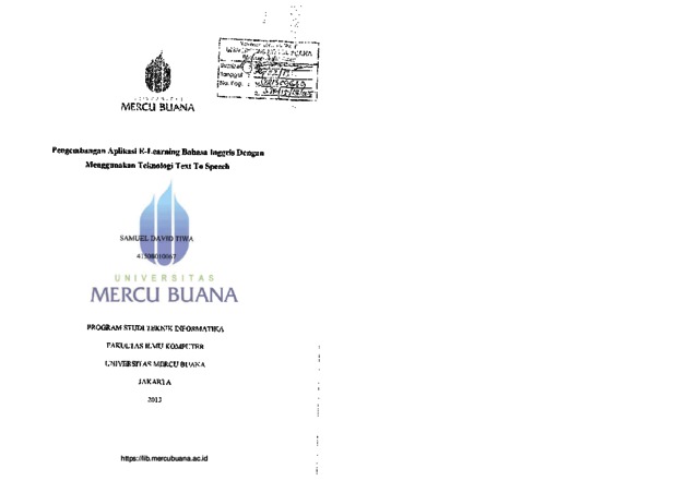 Tiwa, Samuel David (2013) Pengembangan Aplikasi E-Learning Bahasa Inggris Dengan Menggunakan Teknologi Text To Speech. S1 thesis, Universitas Mercu Buana.