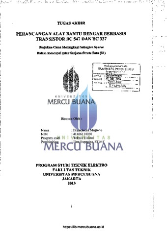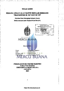MUJIONO, FRANCISCUS (2013) PERANCANGAN ALAT BANTU DENGAR BERBASIS TRANSISTOR BC 547 DAN BC 337. S1 thesis, Universitas Mercu Buana Jakarta.