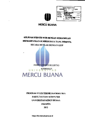 Sulistyo, Febryo Ponco (2013) APLIKASI SERVER WEB DENGAN KEMAMPUAN MEMAMPATKAN SUMBER DAYA YANG DIMINTA SECARA MUTLAK DENGAN GZIP. S1 thesis, Universitas Mercu Buana.