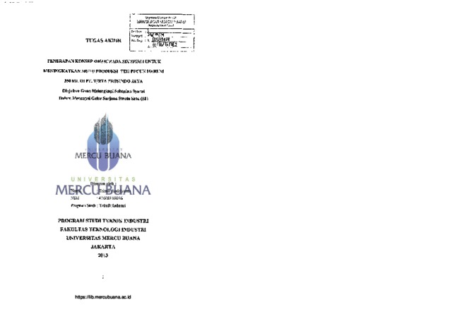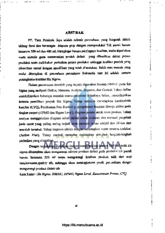 ANDRIYANTO, TRINO (2013) PENERAPAN KONSEP PADA SIX SIGMA UNTUK MENINGKATKAN MUTU PRODUKSI TEH PUCUK HARUM 350 ML DI PT TIRTA FRESINDO JAYA. S1 thesis, Universitas Mercu Buana Jakarta.