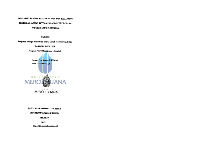 Utomo, Prio Agung Tri (2013) PENGARUH FAKTOR KEUANGAN DAN NON KEUANGAN TERHADAP INITIAL RETURN PADA IPO PERUSAHAAN DI BURSA EFEK INDONESIA. S1 thesis, Universitas Mercu Buana.