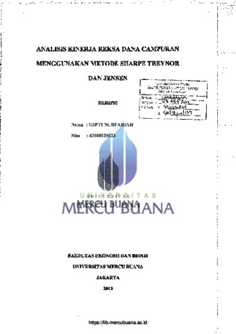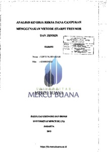Nurfaidah, Septi (2013) ANALISIS KINERJA REKSA DANA CAMPURAN MENGGUNAKAN METODE SHARPE TREYNOR DAN JENSEN. S1 thesis, Universitas Mercu Buana.