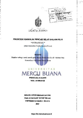 Susanti, Febryana (2013) PRODUKSI SIMBOLIK PENCAK SILAT DALAM FILM - MERANTAU (Studi Semiotika Charles Sanders Pierce). S1 thesis, Universitas Mercu Buana.