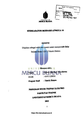 WISUDAWAN, BENNY RAKHMAT (2013) STERILISATOR BERBASIS ATMEGA 16. S1 thesis, Universitas Mercu Buana Jakarta.