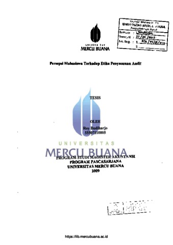 BUDIHARJO, ROY (2009) PERSEPSI MAHASISWA TERHADAP ETIKA PENYUSUNAN AUDIT. S2 thesis, Universitas Mercu Buana Jakarta.