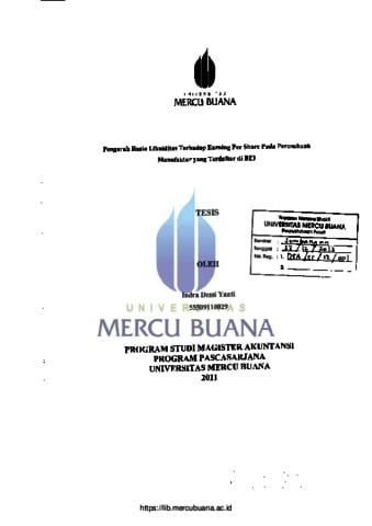 YANTI, INDRA DESSI (2011) PENGARUH RASIO LIKUIDITAS TERHADAP EARNING PER SHARE PADA PERUSAHAAN MANUFAKTUR YANG TERDAFTAR DI BEI. S2 thesis, Universitas Mercu Buana Jakarta.