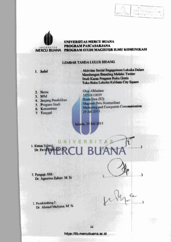 Alkhalam, Ghia (2013) Aktivitas Social Engagement Leksika Dalam Membangun Branding Twitter Studi Kasus Program Buku Gratis Toko Buku Leksika Kalibata City Square. S2 thesis, Universitas Mercu Buana.