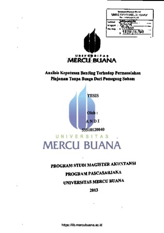 ANDI, (2013) ANALISIS KEPUTUSAN BANDING TERHADAP PERMASALAHAN PINJAMAN TANPA BUNGA DARI PEMEGANG SAHAM. S2 thesis, Universitas Mercu Buana Jakarta.