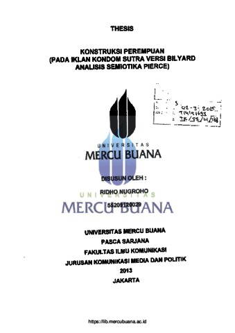 Nugroho, Ridho (2013) Konstruksi Perempuan (pada iklan kondom sutra versi bilyard analisis semiotika pierce). S2 thesis, Universitas Mercu Buana.