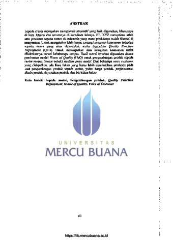 | Uncontrolled Keywords: | Sepeda Motor, Pengembangan Produk, Quality Function Deployment, House of Quality, Voice of Customer |