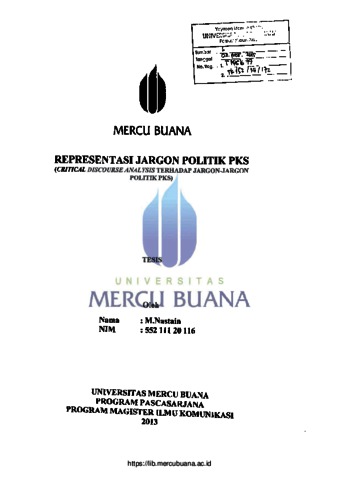 Nastain, M. (2013) Representasi Jargon Politik PKS (Critical Discourse Analysis Terhadap Jargon-Jargon Politik PKS). S2 thesis, Universitas Mercu Buana Jakarta.