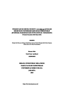 APRILIYANI, NURUL FAZAR (2013) PEMANFAATAN MEDIA WEBSITE www.dgip.go.id DALAM MEMENUHI INFORMASI KARYAWAN DIREKTORAT JENDERAL HAK KEKAYAAN INTELEKTUAL TANGERANG (Periode Desember 2012-Maret 2013). S1 thesis, Universitas Mercu Buana Jakarta.