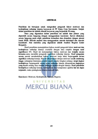 Hermawan, (2013) PENGARUH MOTIVASI DAN KEDISIPLINAN TERHADAP KINERJA DI PT. KIARA COM SERVISINDO. S1 thesis, Universitas Mercu Buana.
