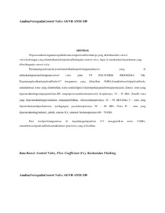 | Uncontrolled Keywords: | Contol Valve,Flw Coeffcient (Cv),kavitasi dan flashing |