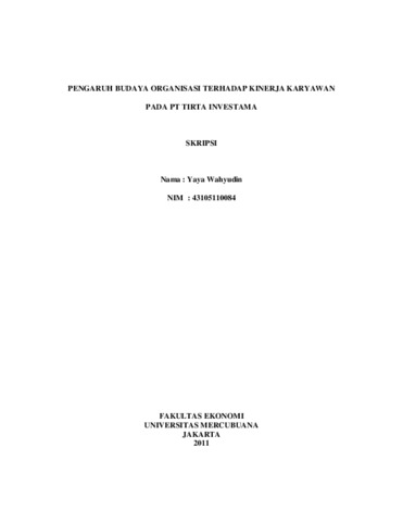 WAHYUDIN, YAYA (2011) PENGARUH BUDAYA ORGANISASI TERHADAP KINERJA KARYAWAN PADA PT TIRTA INVESTAMA. S1 thesis, Universitas Mercu Buana Jakarta.