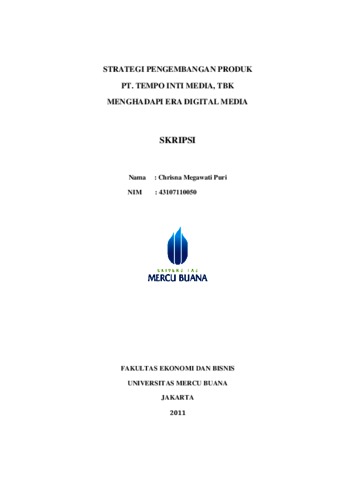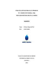 PUTRI, CHRISNA MEGAWATI (2011) STRATEGI PENGEMBANGAN PRODUK PT. TEMPO INTI MEDIA, TBK MENGHADAPI ERA DIGITAL MEDIA. S1 thesis, Universitas Mercu Buana Jakarta.
