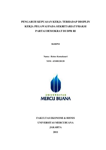 KOMALASARI, RETNO (2011) PENGARUH KEPUASAN KERJA TERHADAP DISIPLIN KERJA PEGAWAI PADA SEKRETARIAT FRAKSI PARTAI DEMOKRAT DI DPR RI. S1 thesis, Universitas Mercu Buana Jakarta.