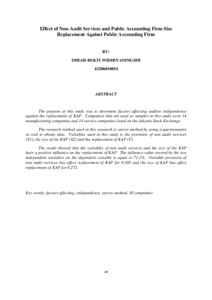 WIDHIYANINGSIH, DHIAH BEKTI (2011) PENGARUH PEMBERIAN JASA NON AUDIT DAN UKURAN KAP TERHADAP PENGGANTIAN KAP. S1 thesis, Universitas Mercu Buana Jakarta.