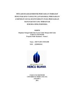 WAHYUNINGSIH, SRI (2011) PENGARUH KARAKTERISTIK PERUSAHAAN TERHADAP PENGUNGKAPAN TANGGUNG JAWAB SOSIAL PERUSAHAAN (CORPORATE SOCIAL RESPONSIBILITY) PADA PERUSAHAAN MANUFAKTUR YANG TERDAFTAR DI BURSA EFEK INDONESIA. S1 thesis, Universitas Mercu Buana Jakarta.