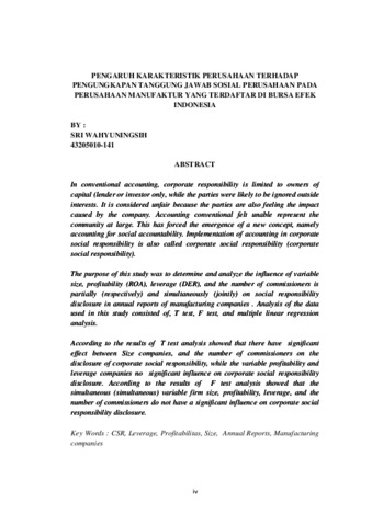 n conventional accounting, corporate responsibility is limited to owners of capital (lender or investor only, while the parties were likely to be ignored outside interests. It is considered unfair because the parties are also feeling the impact caused by the company. Accounting conventional felt unable represent the community at large. This has forced the emergence of a new concept, namely accounting for social accountability. Implementation of accounting in corporate social responsibility is also called corporate social responsibility (corporate social responsibility). The purpose of this study was to determine and analyze the influence of variable size, profitability (ROA), leverage (DER), and the number of commissioners is partially (respectively) and simultaneously (jointly) on social responsibility disclosure in annual reports of manufacturing companies . Analysis of the data used in this study consisted of, T test, F test, and multiple linear regression analysis. According to the results of T test analysis showed that there have significant effect between Size companies, and the number of commissioners on the disclosure of corporate social responsibility, while the variable profitability and leverage companies no significant influence on corporate social responsibility disclosure. According to the results of F test analysis showed that the simultaneous (simultaneous) variable firm size, profitability, leverage, and the number of commissioners do not have a significant influence on corporate social responsibility disclosure.