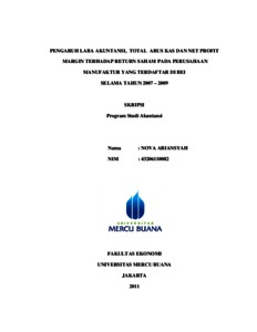 ARIANSYAH, NOVA (2011) PENGARUH LABA AKUNTANSI, TOTAL ARUS KAS DAN NET PROFIT MARGIN TERHADAP RETURN SAHAM PADA PERUSAHAAN MANUFAKTUR YANG TERDAFTAR DI BEI SELAMA TAHUN 2007 – 2009. S1 thesis, Universitas Mercu Buana Jakarta.