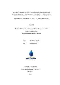 This research is about accounting treatment analysis of the product results muudharabah and Musharakah at Mega Syariah Bank. The purpose of this study was to assess the fit between the accounting treatment of revenue sharing on Islamic mega bank with the provisions under SFAS No. 105 and 106 regarding accounting al-mudarabah and al-musharakah. This study uses descriptive data analysis method of quantitative and qualitative. The kind of data uses the primary and secondary data. The data collection method used in this research are field research method (method of observation and interviews) and literature research method. The results of this research will be showing that recognition of the results of al-mudharabah and al-musyarakah financing efforts have been acordance with SFAS no 105 and 106