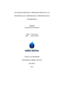 SUCI, TRISNA (2011) ANALISIS SELISIH BIAYA PRODUKSI SEBAGAI ALAT PENGENDALIAN EFISIENSI BIAYA PRODUKSI PADA PT.REPRONINA. S1 thesis, Universitas Mercu Buana Jakarta.