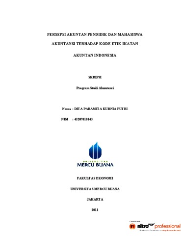 PUTRI, DITA PARAMITA KURNIA (2011) PERSEPSI AKUNTAN PENDIDIK DAN MAHASISWA AKUNTANSI TERHADAP KODE ETIK IKATAN AKUNTAN INDONESIA. S1 thesis, Universitas Mercu Buana Jakarta.