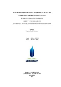SUTIWI, DINA (2011) PENGARUH DANA PIHAK KETIGA, TINGKAT SUKU BUNGA SBI, TINGKAT NON PERFORMING LOANS (NPL) DAN RETURN ON ASSET (ROA) TERHADAP KREDIT YANG DIREALISASI (STUDI KASUS : BANK BUMN DI INDONESIA PERIODE 2005 -2009). S1 thesis, Universitas Mercu Buana Jakarta.