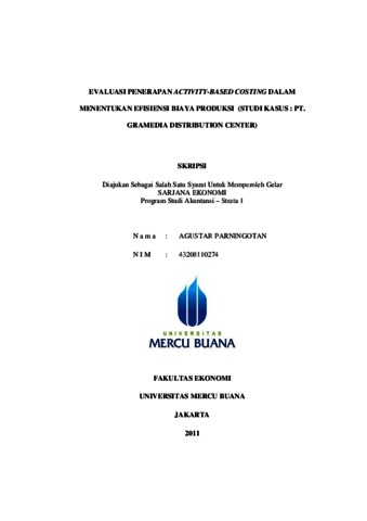 PARNINGOTAN, AGUSTAR (2011) EVALUASI PENERAPAN ACTIVITY-BASED COSTING DALAM MENENTUKAN EFISIENSI BIAYA PRODUKSI (STUDI KASUS : PT. GRAMEDIA DISTRIBUTION CENTER). S1 thesis, Universitas Mercu Buana Jakarta.