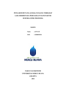 JUWATI, JUWATI (2011) PENGARUH HUTANG JANGKA PANJANG TERHADAP LABA BERSIH PADA PERUSAHAAN MANUFAKTUR DI BURSA EFEK INDONESIA. S1 thesis, Universitas Mercu Buana Jakarta.