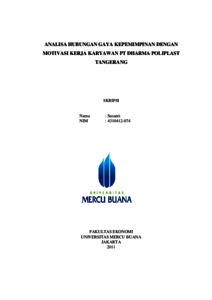 SUSANTI, SUSANTI (2011) ANALISA HUBUNGAN GAYA KEPEMIMPINAN DENGAN MOTIVASI KERJA KARYAWAN PT DHARMA POLIPLAST TANGERANG. S1 thesis, Universitas Mercu Buana Jakarta.