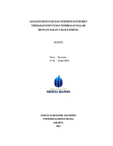 KUSWARNO, KUSWARNO (2011) ANALISIS MOTIVASI DAN PERSEPSI KONSUMEN TERHADAP KEPUTUSAN PEMBELIAN DALAM MENGGUNAKAN TAKSI EXPRESS. S1 thesis, Universitas Mercu Buana Jakarta.