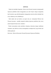 Skripsi ini membahas bagaimana Motivasi dan Persepsi konsumen mempengaruhi keputusan pembelian dalam menggunakan jasa taksi Express dengan menganalisa hasil kuesioner yang telah dikumpulkan menggunakan metode anslisis deskriptif dan di uji validitasnya serta reliabilitasnya. Hasil analisa dari uji korelasi, uji regresi dan uji t menunjukan Motivasi dan Persepsi konsumen memiliki pengaruh terhadap keputusan pembelian baik secara parsial maupun bersama sama ( simultan ) Penulis menyarankan untuk penelitian selanjutnya diteruskan dengan melibatkan responden yang lebih luas karena memungkinkan mendapat hasil yang berbeda dan lebih koprehensif.