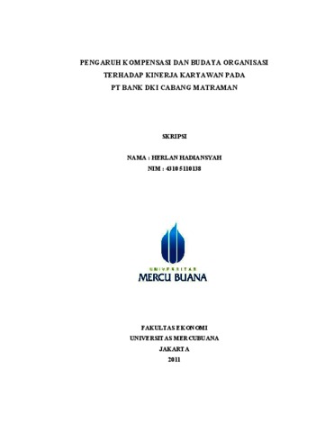 HADIANSYAH, HERLAN (2011) PENGARUH KOMPENSASI DAN BUDAYA ORGANISASI TERHADAP KINERJA KARYAWAN PADA PT BANK DKI CABANG MATRAMAN. S1 thesis, Universitas Mercu Buana Jakarta.